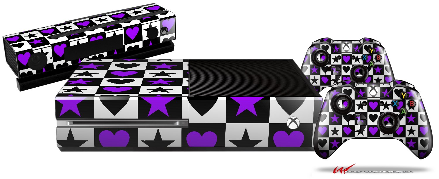 Purple Hearts And Stars - Holiday Bundle Decal Style Skin fits XBOX One Console Original, Kinect and 2 Controllers (XBOX SYSTEM NOT INCLUDED)
