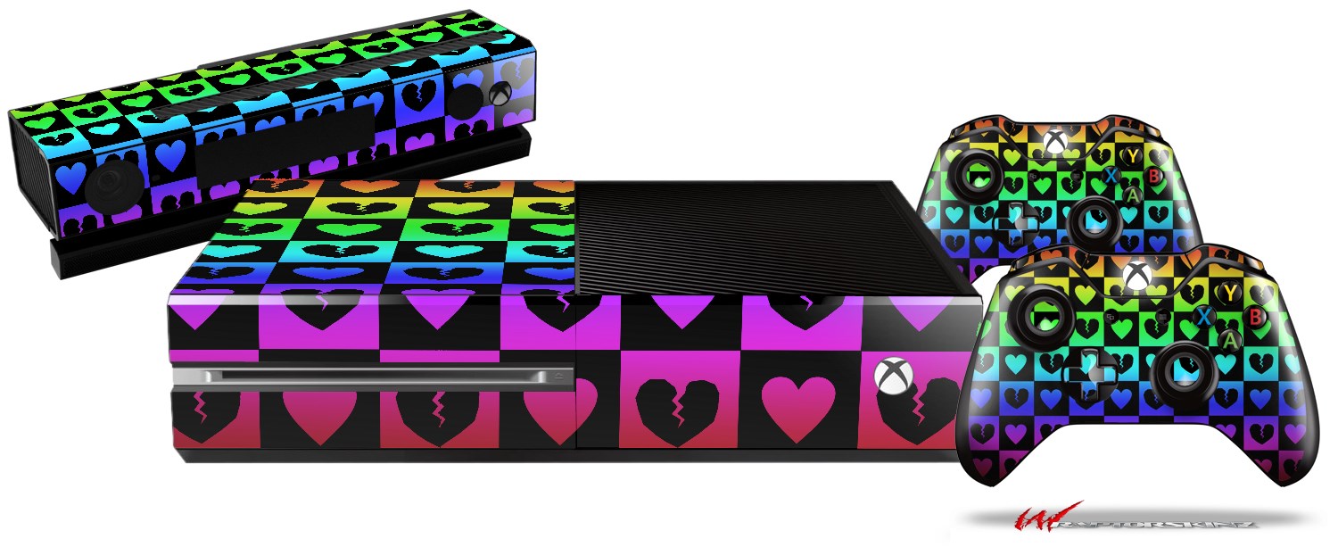 Love Heart Checkers Rainbow - Holiday Bundle Decal Style Skin fits XBOX One Console Original, Kinect and 2 Controllers (XBOX SYSTEM NOT INCLUDED)