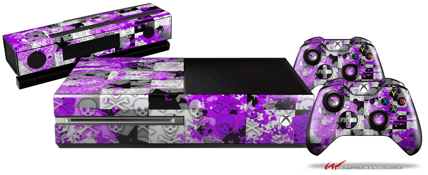 Purple Checker Skull Splatter - Holiday Bundle Decal Style Skin fits XBOX One Console Original, Kinect and 2 Controllers (XBOX SYSTEM NOT INCLUDED)