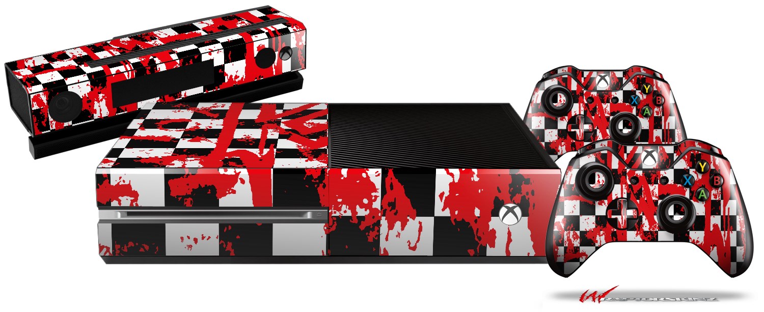 Checkerboard Splatter - Holiday Bundle Decal Style Skin fits XBOX One Console Original, Kinect and 2 Controllers (XBOX SYSTEM NOT INCLUDED)