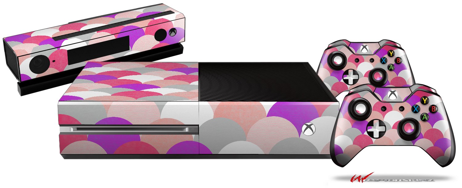 Brushed Circles Pink - Holiday Bundle Decal Style Skin fits XBOX One Console Original, Kinect and 2 Controllers (XBOX SYSTEM NOT INCLUDED)