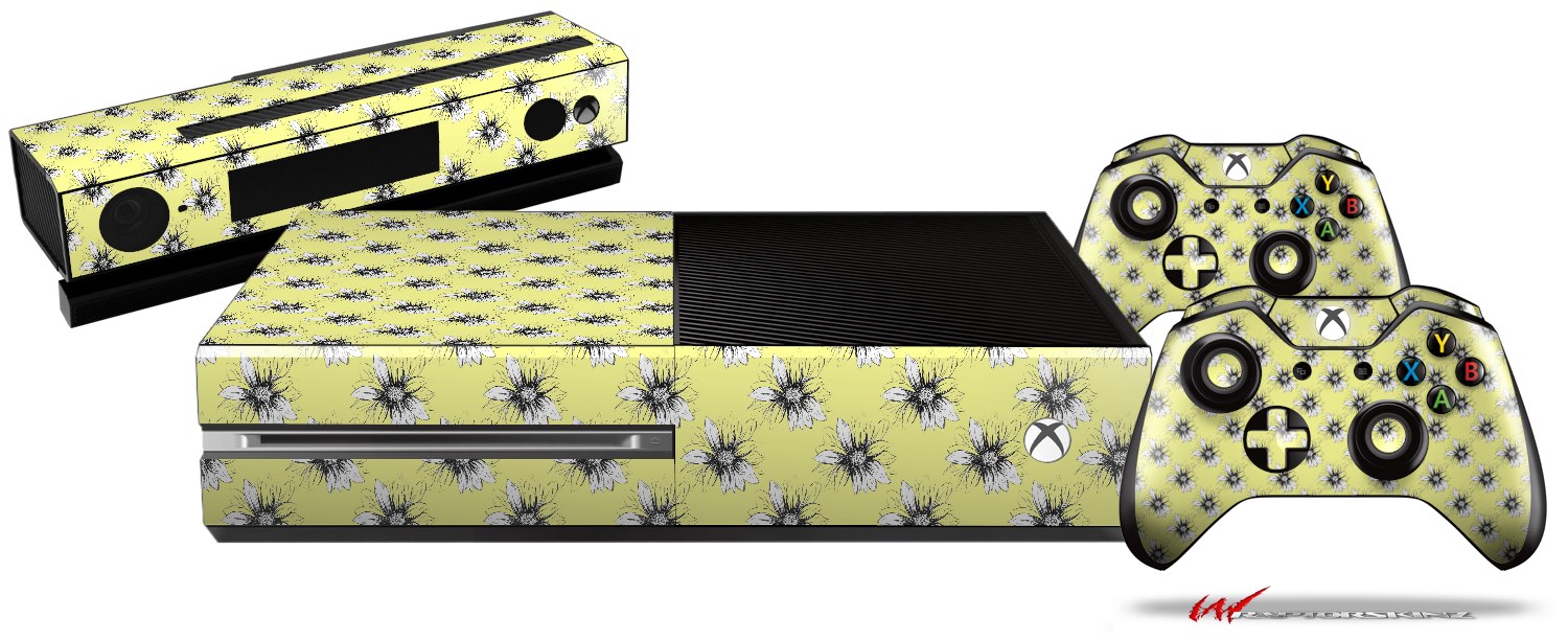 Kearas Daisies Yellow - Holiday Bundle Decal Style Skin fits XBOX One Console Original, Kinect and 2 Controllers (XBOX SYSTEM NOT INCLUDED)