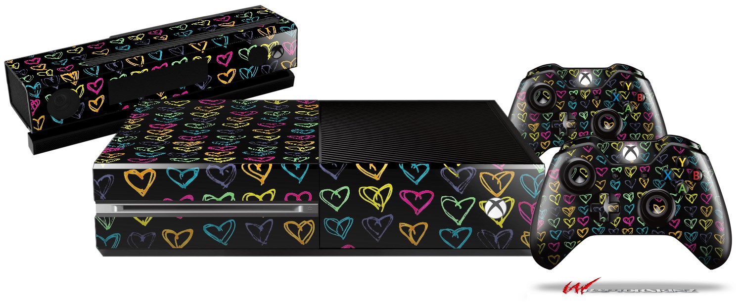 Kearas Hearts Black - Holiday Bundle Decal Style Skin fits XBOX One Console Original, Kinect and 2 Controllers (XBOX SYSTEM NOT INCLUDED)