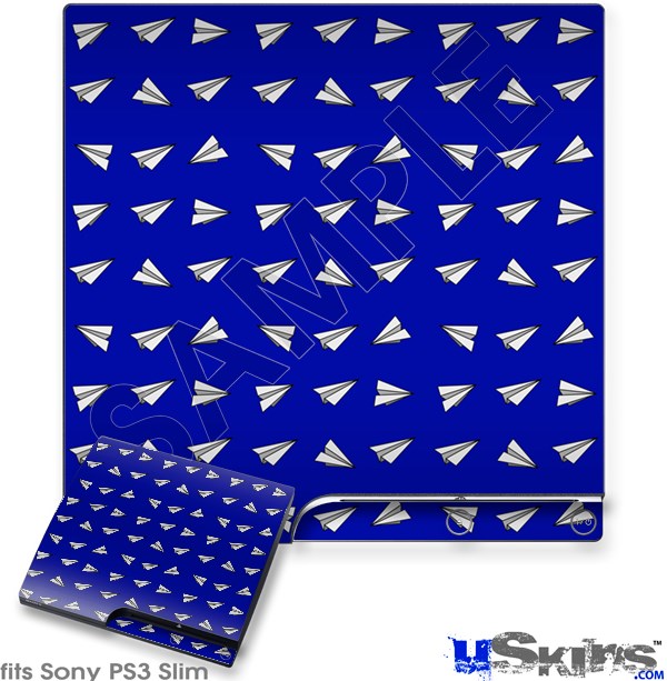 Decal Skin compatible with Sony PS3 Slim Paper Planes Royal Blue