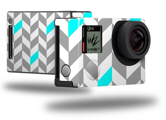 Chevrons Gray And Aqua - Decal Style Skin fits GoPro Hero 4 Black Camera (GOPRO SOLD SEPARATELY)