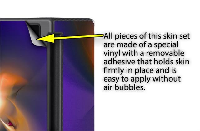 WraptoSkinz™ skins are superb photo quality designs and vibrant colors printed with special Eco-Friendly, fade resistant inks. Our skins are self-adhering flexible vinyl skins that helps prevent scratches. Made of composite, multi-layered commercial grade materials. The bottom layer is made with a special removable adhesive that is easily positioned and applied without air bubbles. We print your design on the bottom layer then bond a professional grade laminate over the entire skin adding a glossy protective finish.