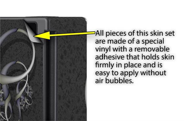WraptoSkinz™ skins are superb photo quality designs and vibrant colors printed with special Eco-Friendly, fade resistant inks. Our skins are self-adhering flexible vinyl skins that helps prevent scratches. Made of composite, multi-layered commercial grade materials. The bottom layer is made with a special removable adhesive that is easily positioned and applied without air bubbles. We print your design on the bottom layer then bond a professional grade laminate over the entire skin adding a glossy protective finish.