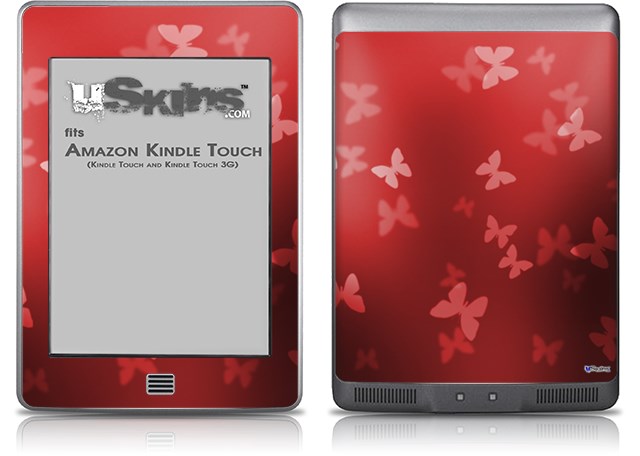 Bokeh Butterflies Red - Decal Style Skin (fits Amazon Kindle Touch Skin)