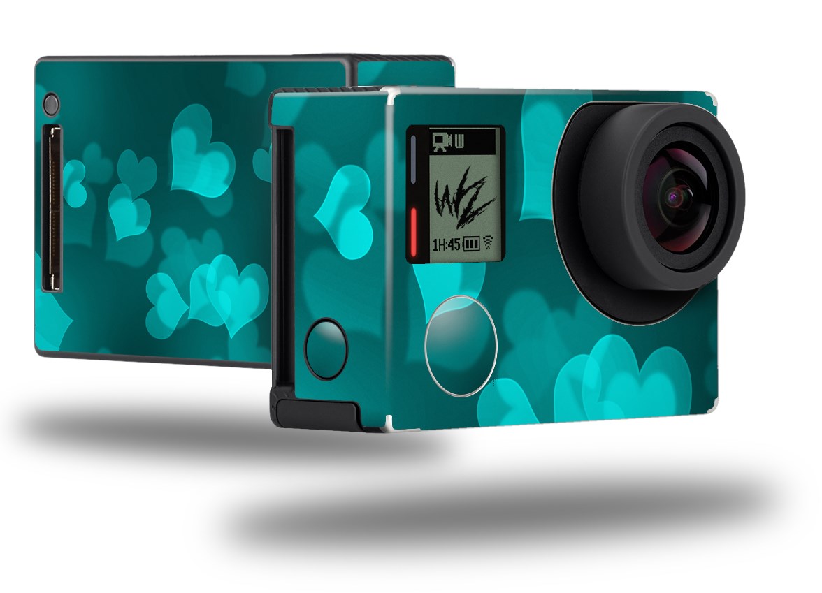 Bokeh Hearts Neon Teal - Decal Style Skin fits GoPro Hero 4 Black Camera (GOPRO SOLD SEPARATELY)
