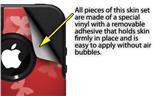 uSkins™ are self adhering vinyl decal style skins and are a great way to add a new look to your protective case. uSkins are a composite of two layers of commercial grade materials. The bottom layer is a soft, flexible vinyl with a special removable adhesive that is easily positioned, applied without air bubbles. Next we print the bottom layer with UV protected, fade resistant inks that deliver superb photo quality designs in vibrant colors. Finally we bond a professional grade laminate over the entire skin adding a glossy protective finish.