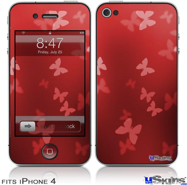 iPhone 4 Decal Style Vinyl Skin - Bokeh Butterflies Red (DOES NOT fit newer iPhone 4S)