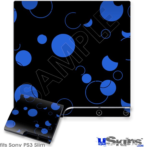 Decal Skin compatible with Sony PS3 Slim Lots of Dots Blue on Black