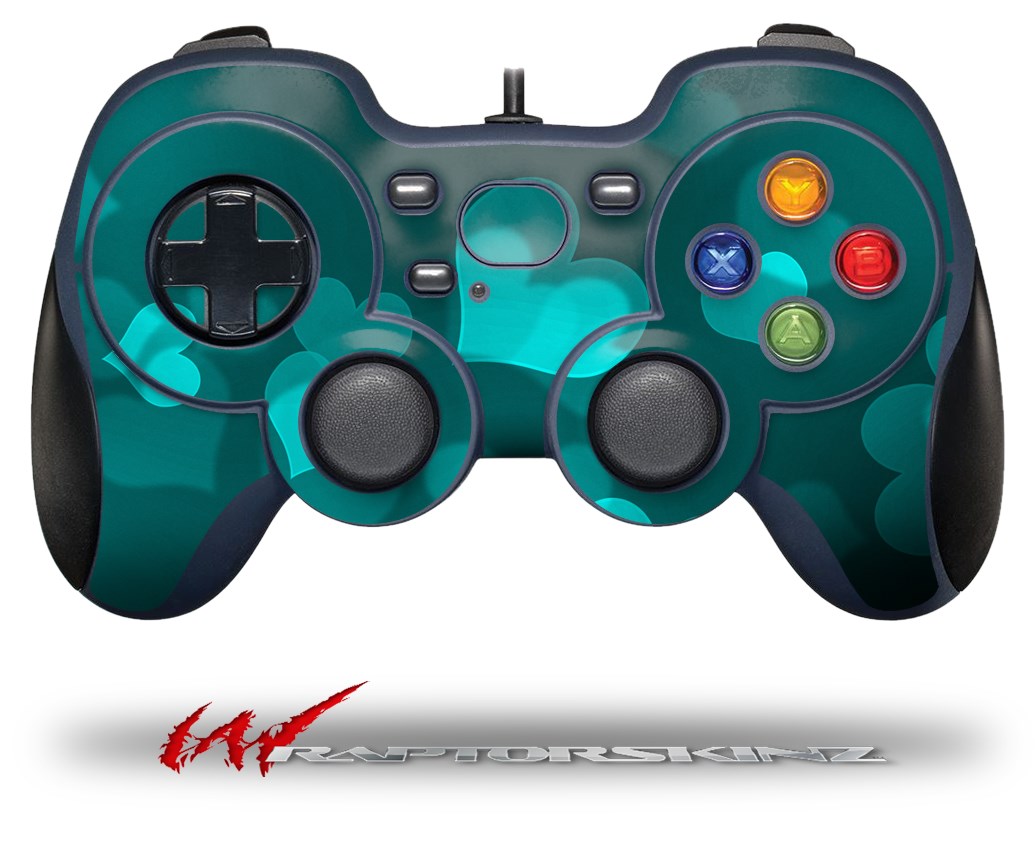 Bokeh Hearts Neon Teal - Decal Style Skin fits Logitech F310 Gamepad Controller (CONTROLLER SOLD SEPARATELY)