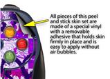 uSkins™ are self adhering vinyl skins that help prevent scratches and look great doing it. Unlike bulky silicon and plastic covers, uSkins are designed to be thin and very tough. uSkins are a composite of two layers of commercial grade materials. The bottom layer is a soft, flexible vinyl with a special removable adhesive that is easily positioned and applied without air bubbles. The bottom layer print with special UV protected, fade resistant inks that deliver superb photo quality designs in vibrant colors. Finally we bond a professional grade laminate over the entire skin adding a glossy protective finish.