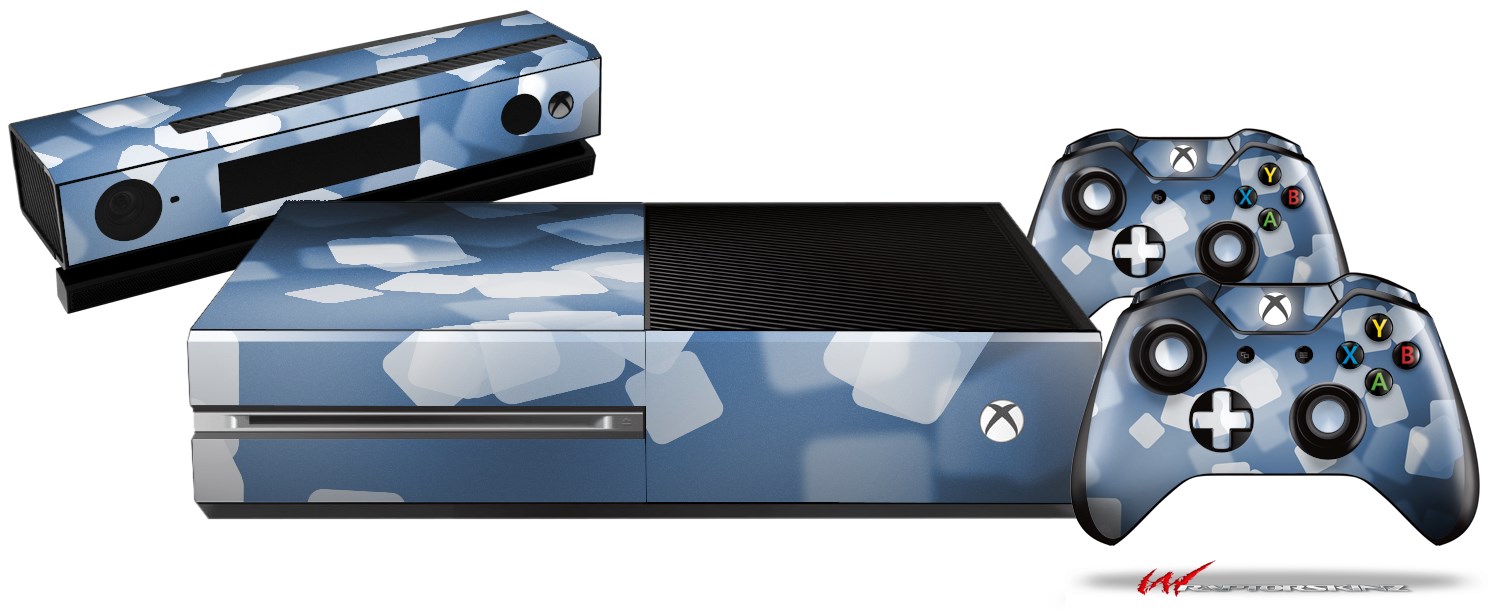 Bokeh Squared Blue - Holiday Bundle Decal Style Skin fits XBOX One Console Original, Kinect and 2 Controllers (XBOX SYSTEM NOT INCLUDED)