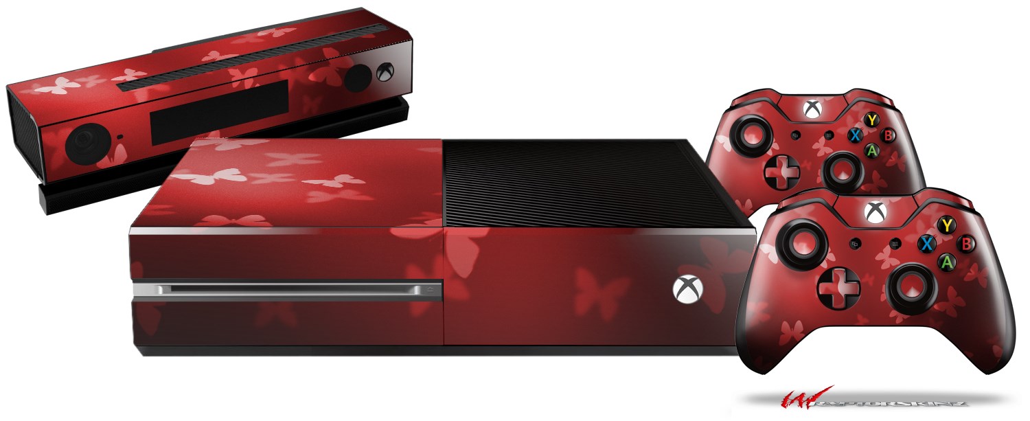 Bokeh Butterflies Red - Holiday Bundle Decal Style Skin fits XBOX One Console Original, Kinect and 2 Controllers (XBOX SYSTEM NOT INCLUDED)