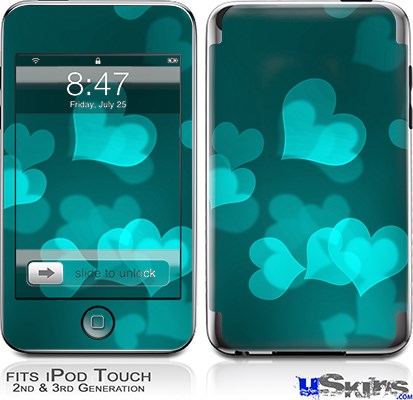 iPod Touch 2G & 3G Skin - Bokeh Hearts Neon Teal