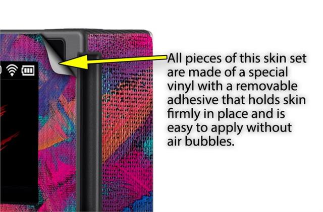WraptoSkinz™ skins are superb photo quality designs and vibrant colors printed with special Eco-Friendly, fade resistant inks. Our skins are self-adhering flexible vinyl skins that helps prevent scratches. Made of composite, multi-layered commercial grade materials. The bottom layer is made with a special removable adhesive that is easily positioned and applied without air bubbles. We print your design on the bottom layer then bond a professional grade laminate over the entire skin adding a glossy protective finish.