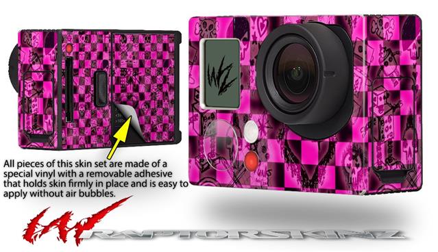 Pink Checkerboard Sketches - Decal Style Skin fits GoPro Hero 3+ Camera (GOPRO NOT INCLUDED)
