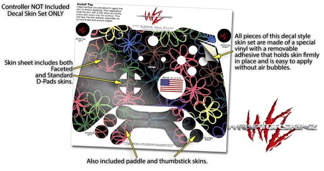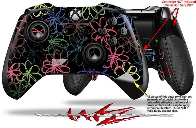 Kearas Flowers on Black - Decal Style Skin fits Microsoft XBOX One ELITE Wireless Controller