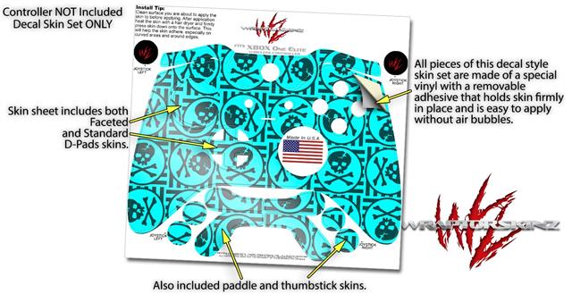 Skull Patch Pattern Blue - Decal Style Skin fits Microsoft XBOX One ELITE Wireless Controller