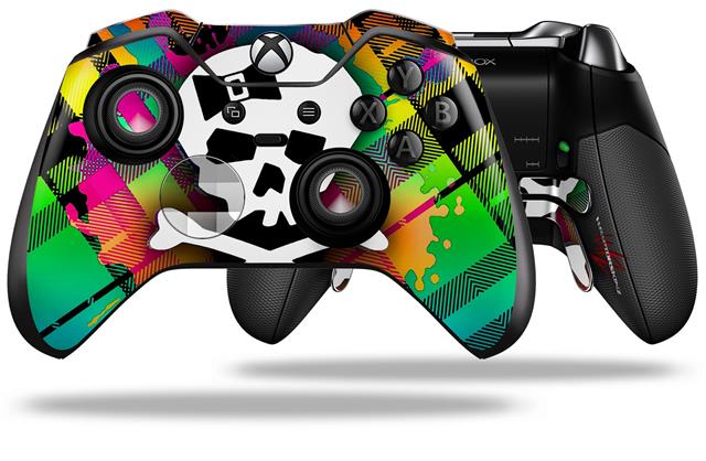 Rainbow Plaid Skull - Decal Style Skin fits Microsoft XBOX One ELITE Wireless Controller