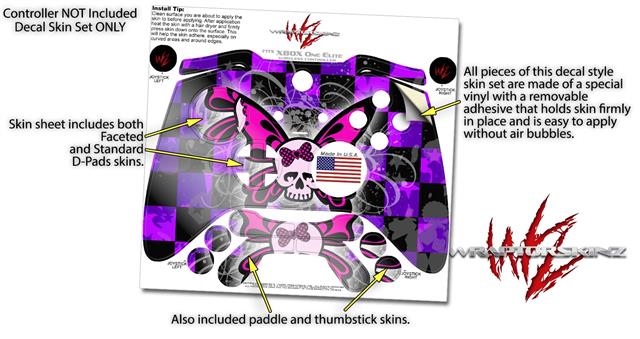 Butterfly Skull - Decal Style Skin fits Microsoft XBOX One ELITE Wireless Controller