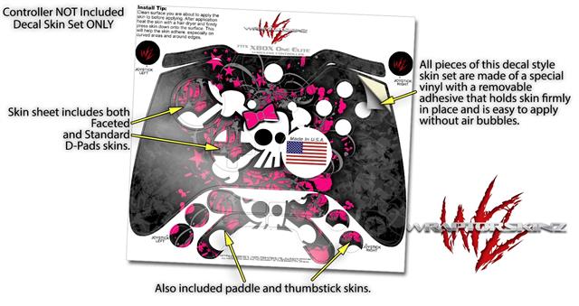 Girly Skull Bones - Decal Style Skin fits Microsoft XBOX One ELITE Wireless Controller