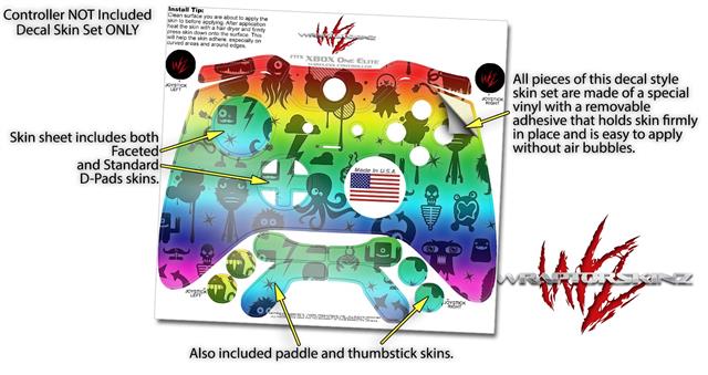 Cute Rainbow Monsters - Decal Style Skin fits Microsoft XBOX One ELITE Wireless Controller