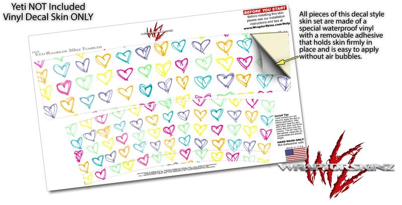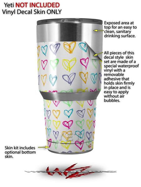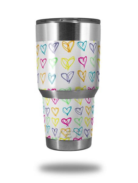 Skin Decal Wrap for Yeti Tumbler Rambler 30 oz Kearas Hearts White (TUMBLER NOT INCLUDED)