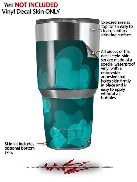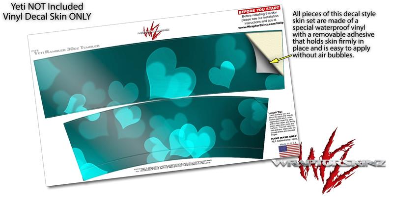 Skin Decal Wrap for Yeti Tumbler Rambler 30 oz Bokeh Hearts Neon Teal (TUMBLER NOT INCLUDED)