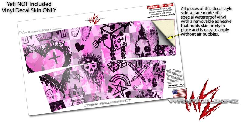 Skin Decal Wrap for Yeti Tumbler Rambler 30 oz Scene Kid Sketches Pink (TUMBLER NOT INCLUDED)