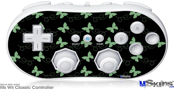 Wii Classic Controller Skin - Pastel Butterflies Green on Black
