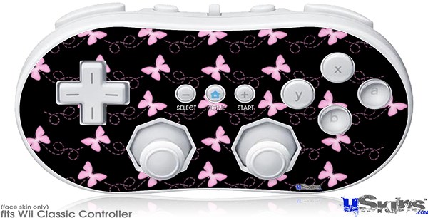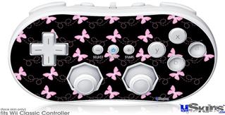 Wii Classic Controller Skin - Pastel Butterflies Pink on Black