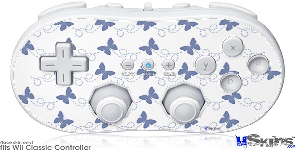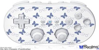 Wii Classic Controller Skin - Pastel Butterflies Blue on White