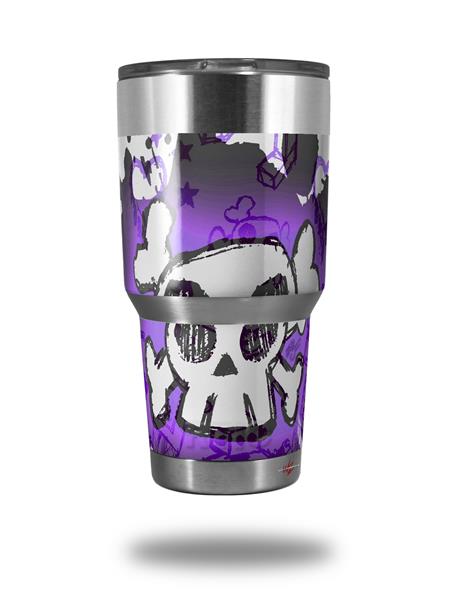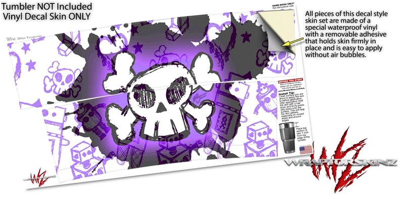 WraptorSkinz Skin Wrap compatible with RTIC 30oz ORIGINAL 2017 AND OLDER Tumblers Cartoon Skull Purple (TUMBLER NOT INCLUDED)