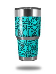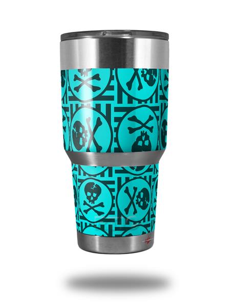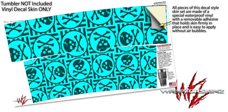 WraptorSkinz Skin Wrap compatible with RTIC 30oz ORIGINAL 2017 AND OLDER Tumblers Skull Patch Pattern Blue (TUMBLER NOT INCLUDED)