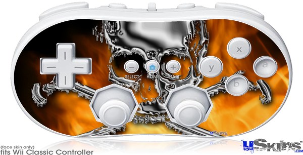 Wii Classic Controller Skin - Chrome Skull on Fire