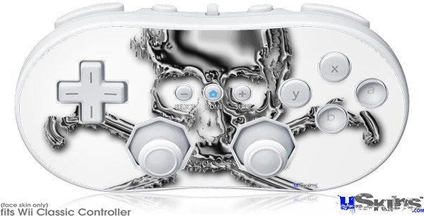 Wii Classic Controller Skin - Chrome Skull on White