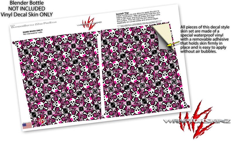 Decal Style Skin Wrap works with Blender Bottle 22oz ProStak Splatter Girly Skull Pink (BOTTLE NOT INCLUDED)