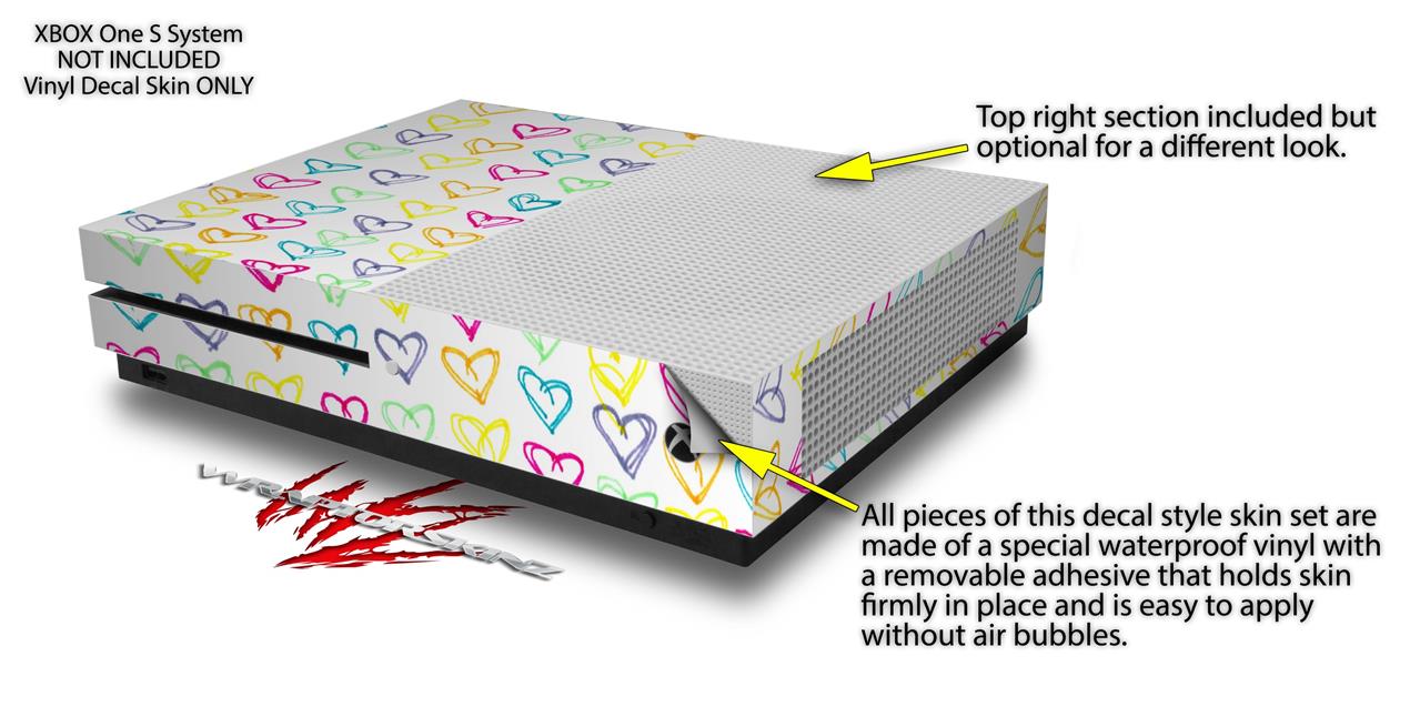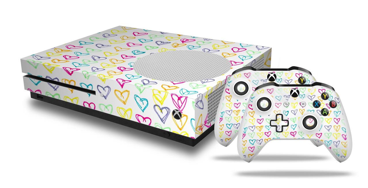 WraptorSkinz Decal Skin Wrap Set works with 2016 and newer XBOX One S Console and 2 Controllers Kearas Hearts White
