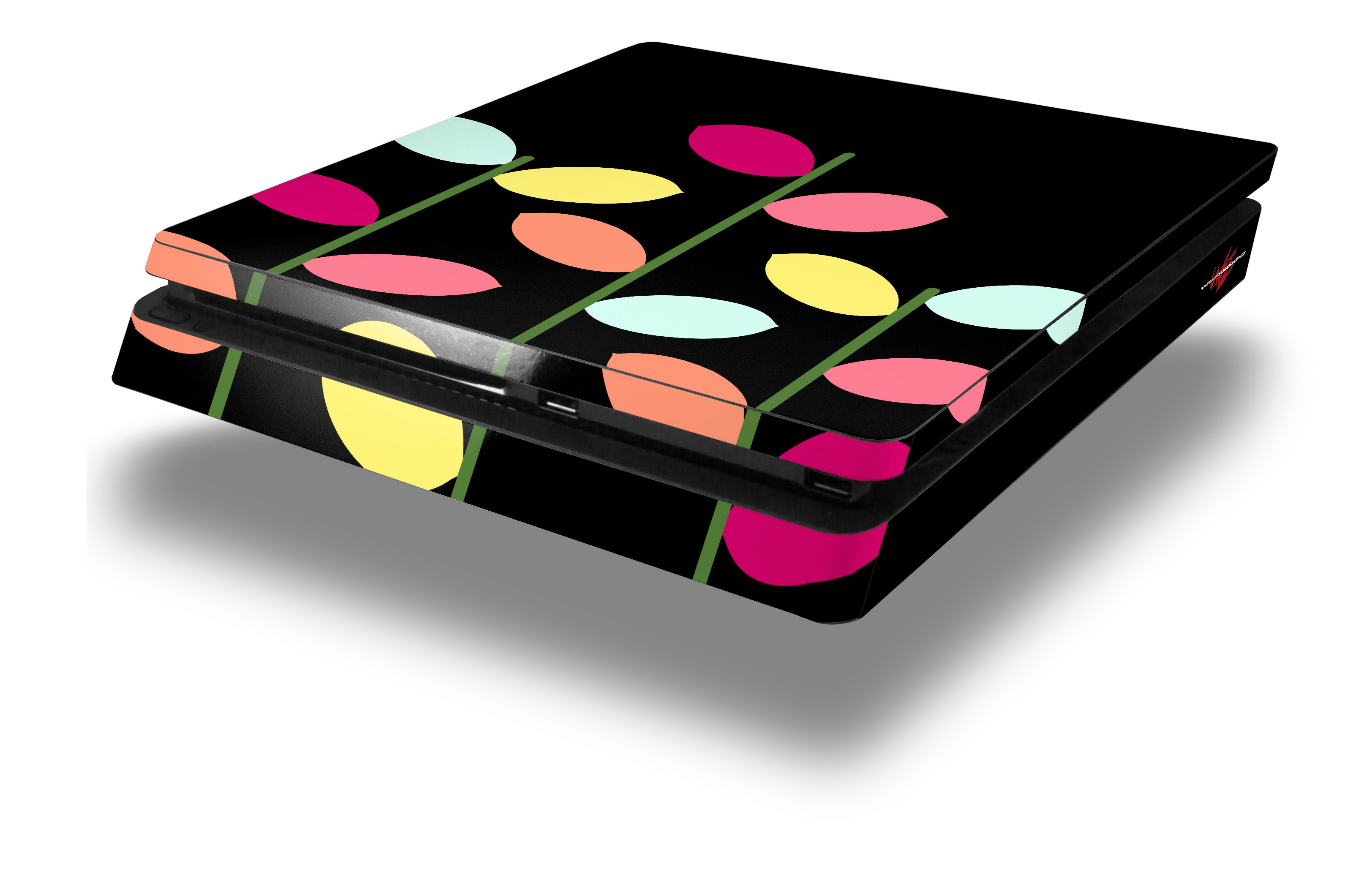 Vinyl Decal Skin Wrap compatible with Sony PlayStation 4 Slim Console Plain Leaves On Black (PS4 NOT INCLUDED)