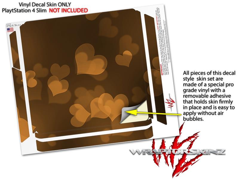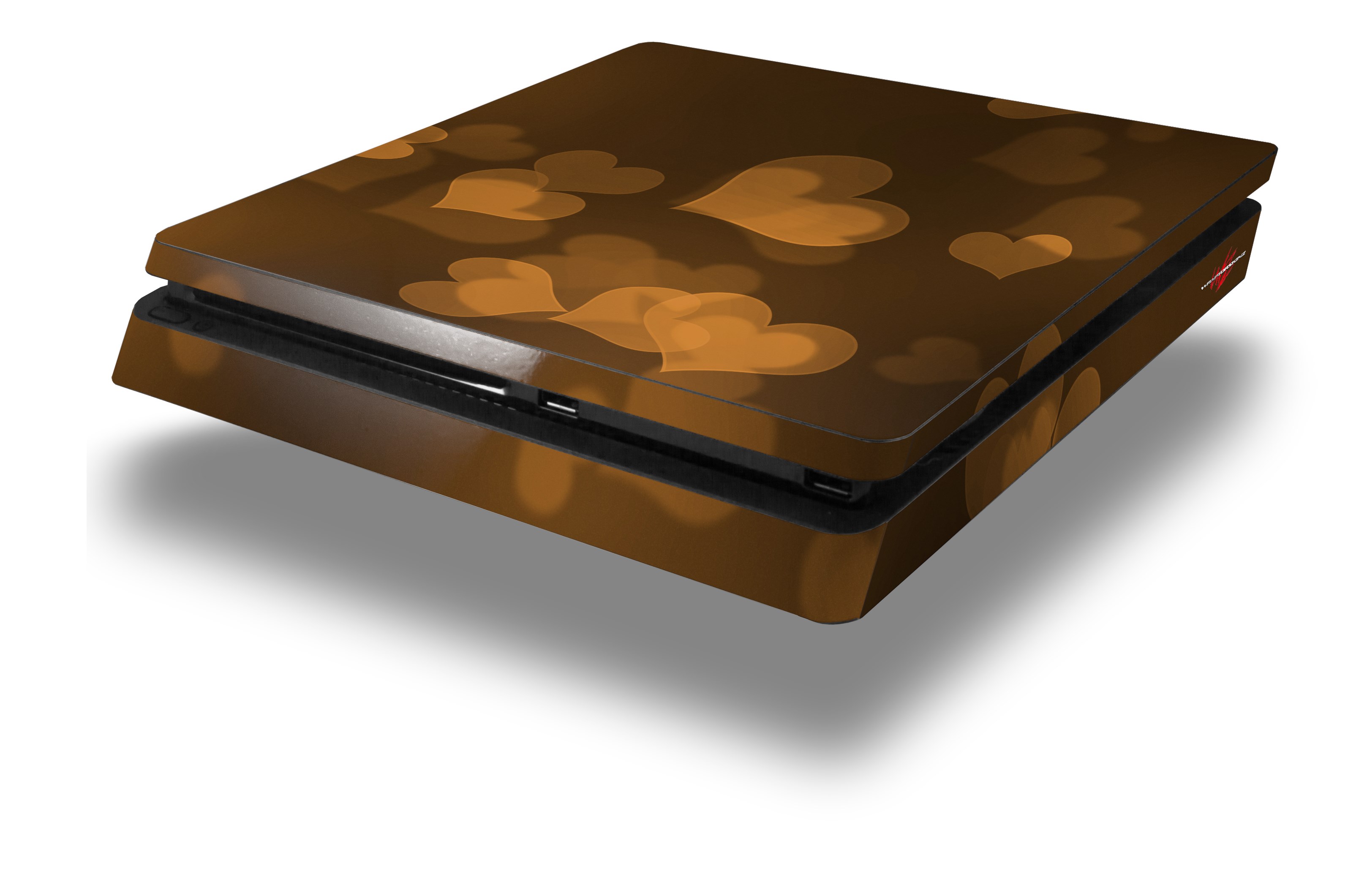 Vinyl Decal Skin Wrap compatible with Sony PlayStation 4 Slim Console Bokeh Hearts Orange (PS4 NOT INCLUDED)