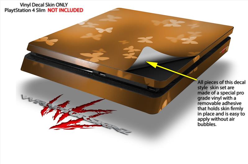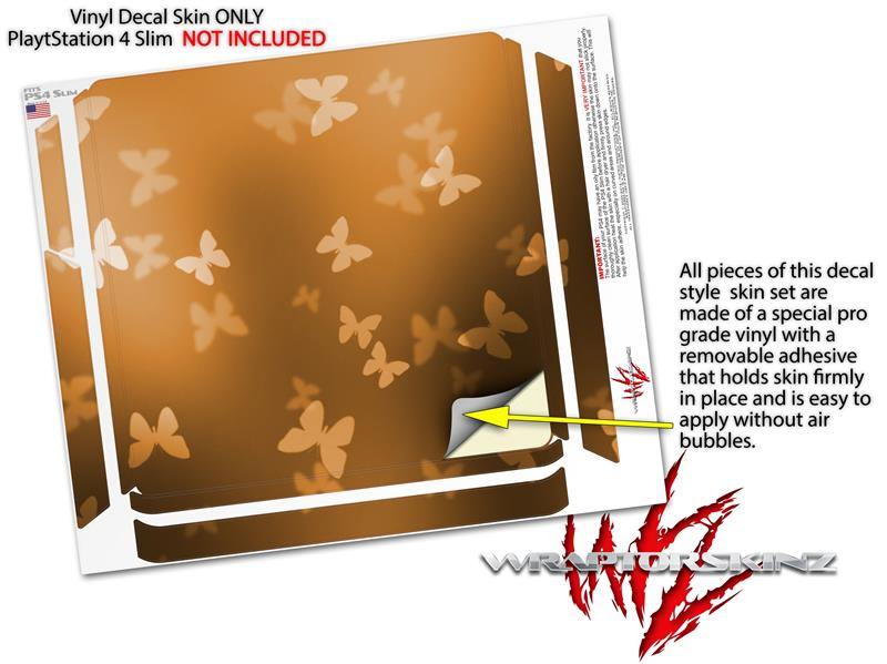 Vinyl Decal Skin Wrap compatible with Sony PlayStation 4 Slim Console Bokeh Butterflies Orange (PS4 NOT INCLUDED)
