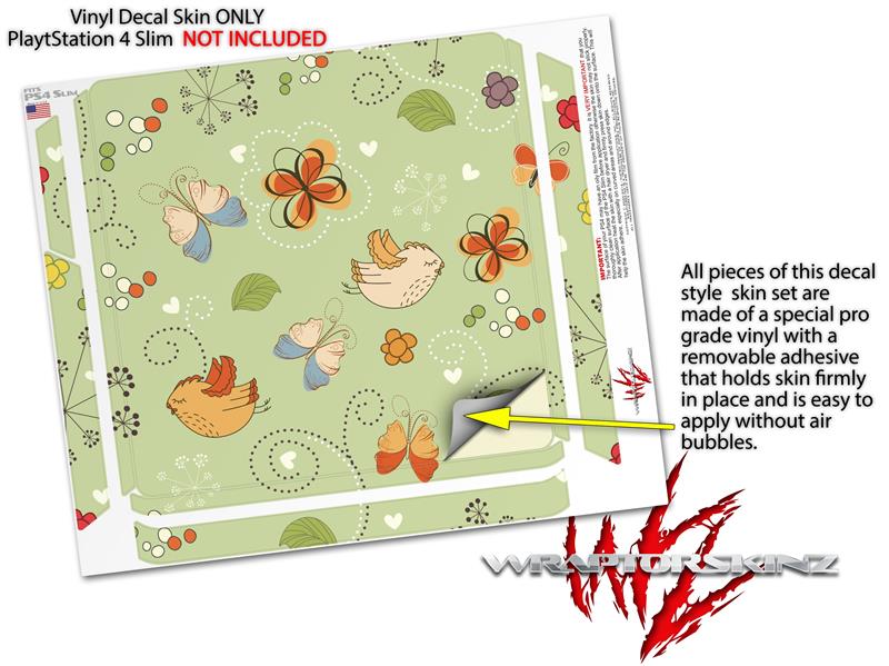 Vinyl Decal Skin Wrap compatible with Sony PlayStation 4 Slim Console Birds Butterflies and Flowers (PS4 NOT INCLUDED)