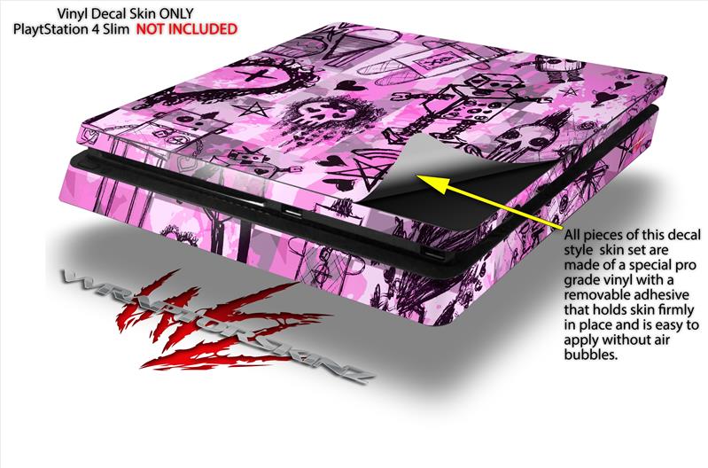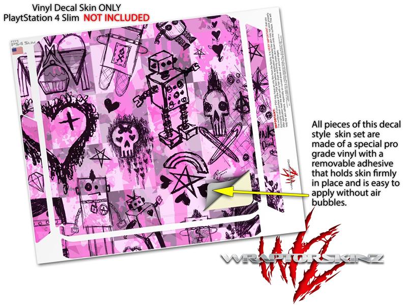 Vinyl Decal Skin Wrap compatible with Sony PlayStation 4 Slim Console Scene Kid Sketches Pink (PS4 NOT INCLUDED)