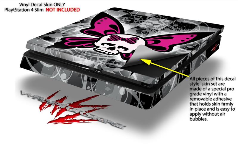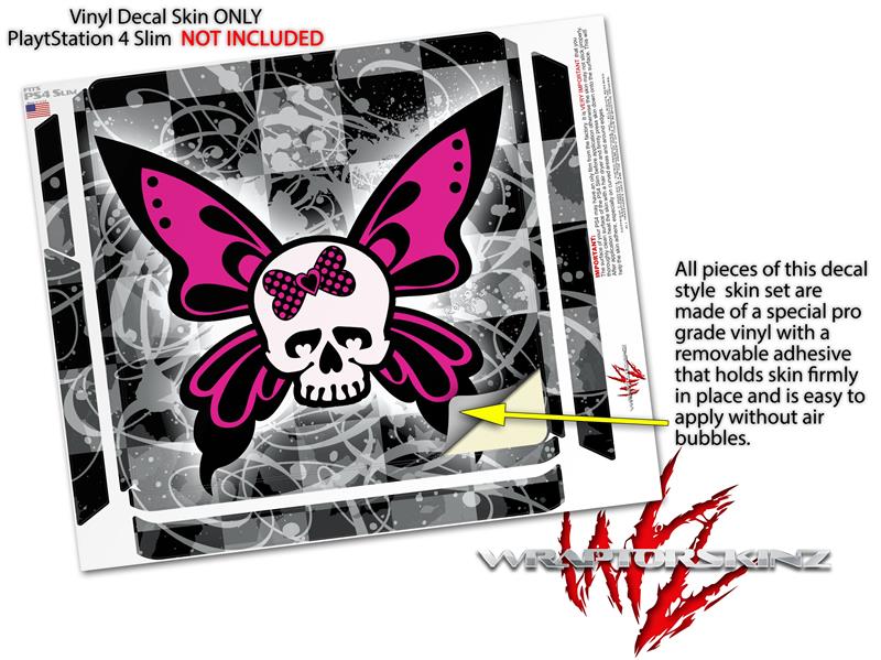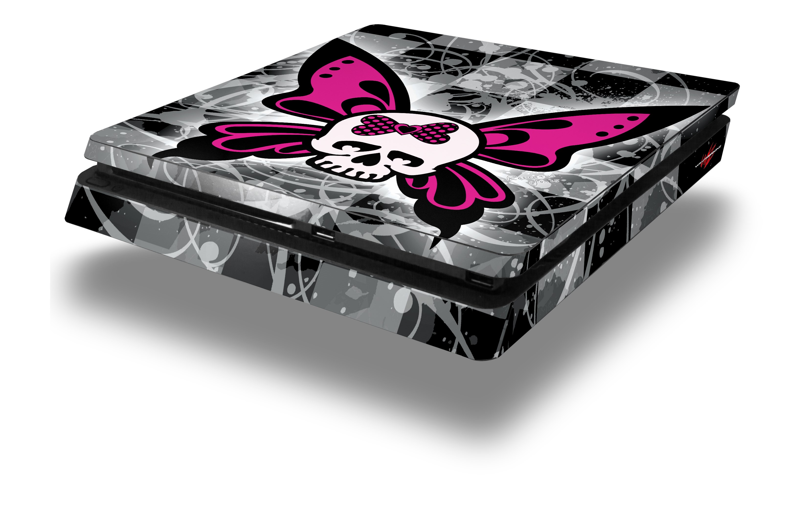 Vinyl Decal Skin Wrap compatible with Sony PlayStation 4 Slim Console Skull Butterfly (PS4 NOT INCLUDED)