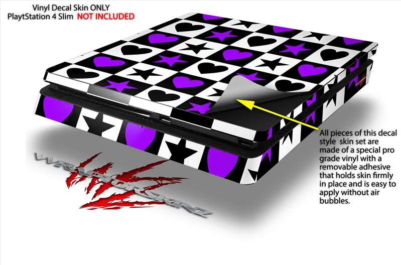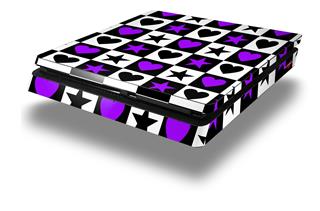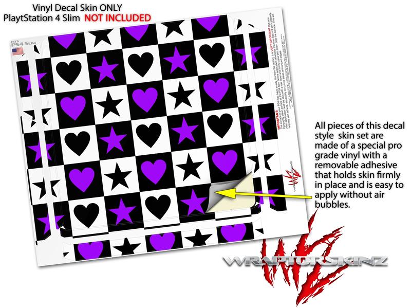 Vinyl Decal Skin Wrap compatible with Sony PlayStation 4 Slim Console Purple Hearts And Stars (PS4 NOT INCLUDED)