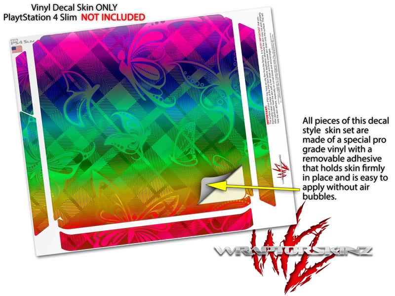 Vinyl Decal Skin Wrap compatible with Sony PlayStation 4 Slim Console Rainbow Butterflies (PS4 NOT INCLUDED)