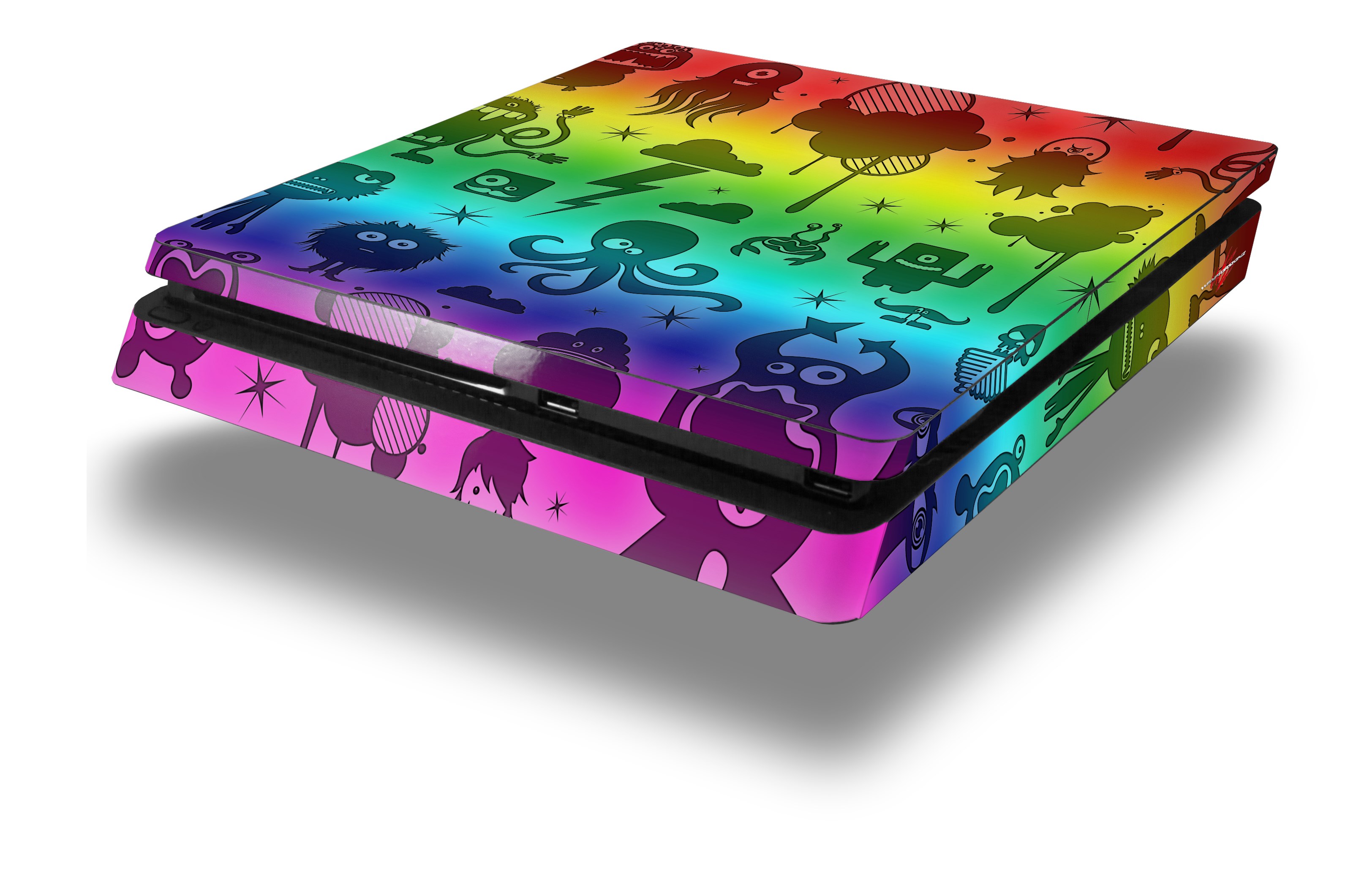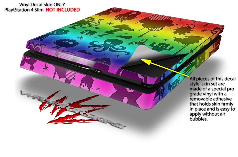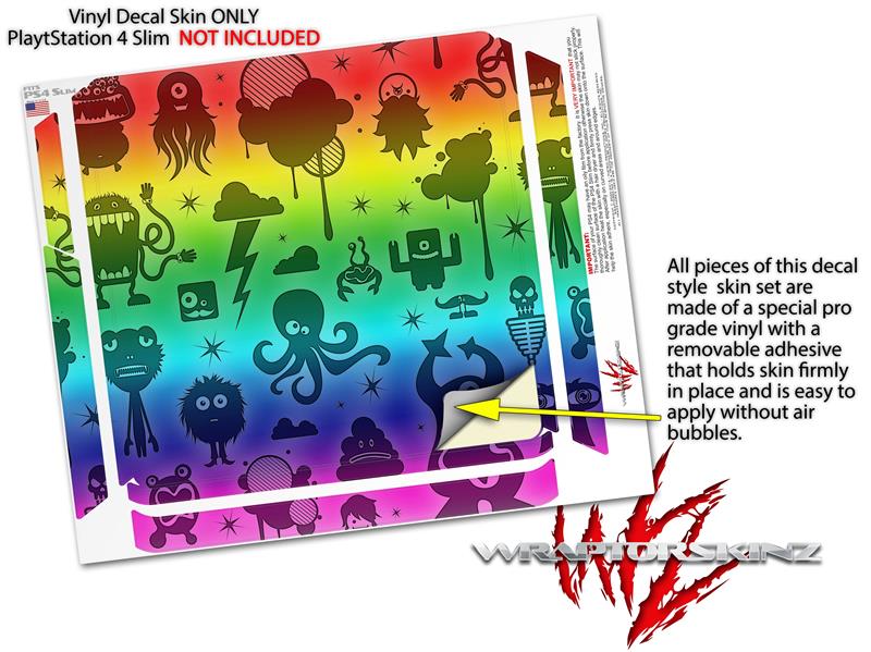 Vinyl Decal Skin Wrap compatible with Sony PlayStation 4 Slim Console Cute Rainbow Monsters (PS4 NOT INCLUDED)